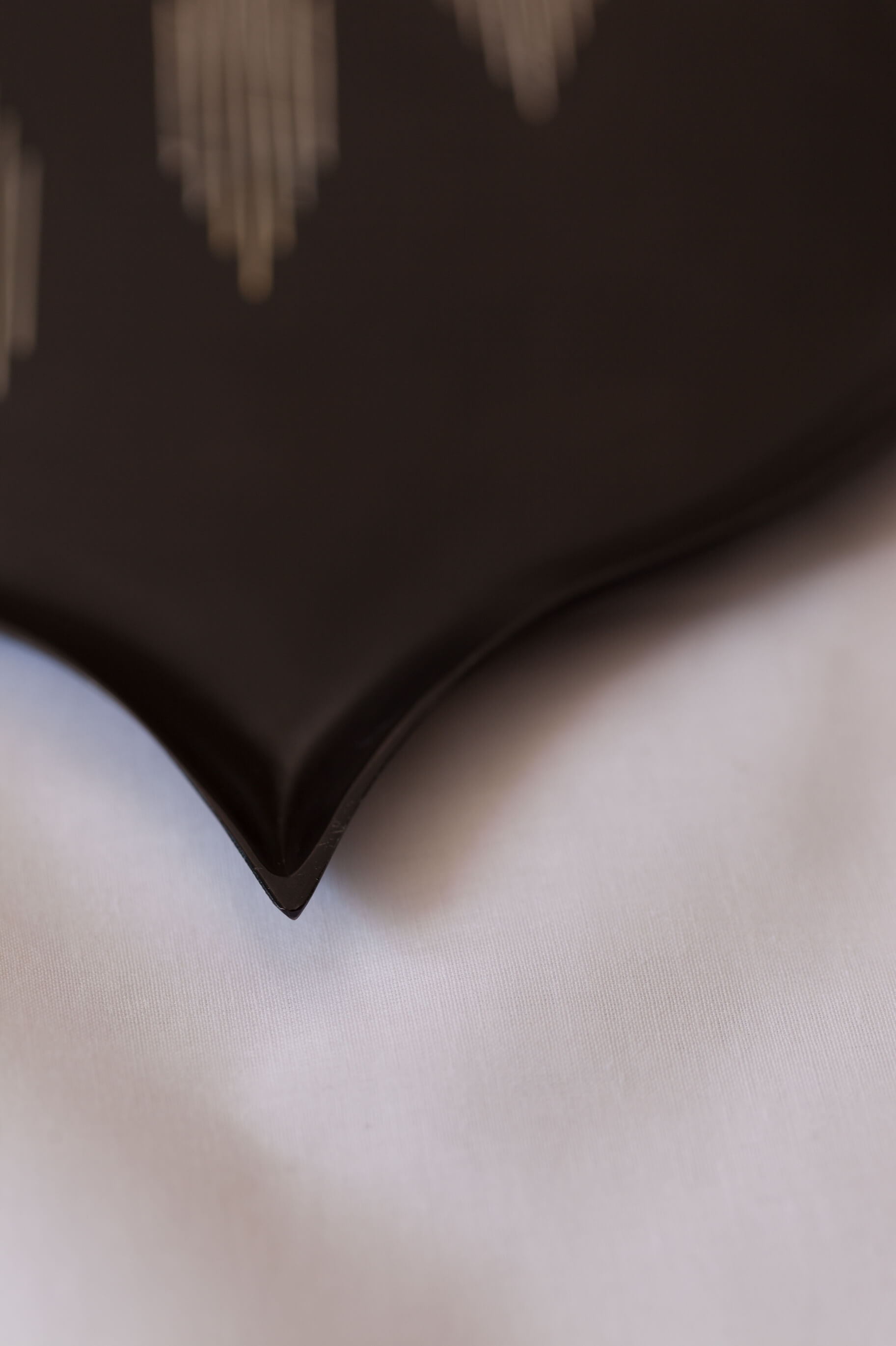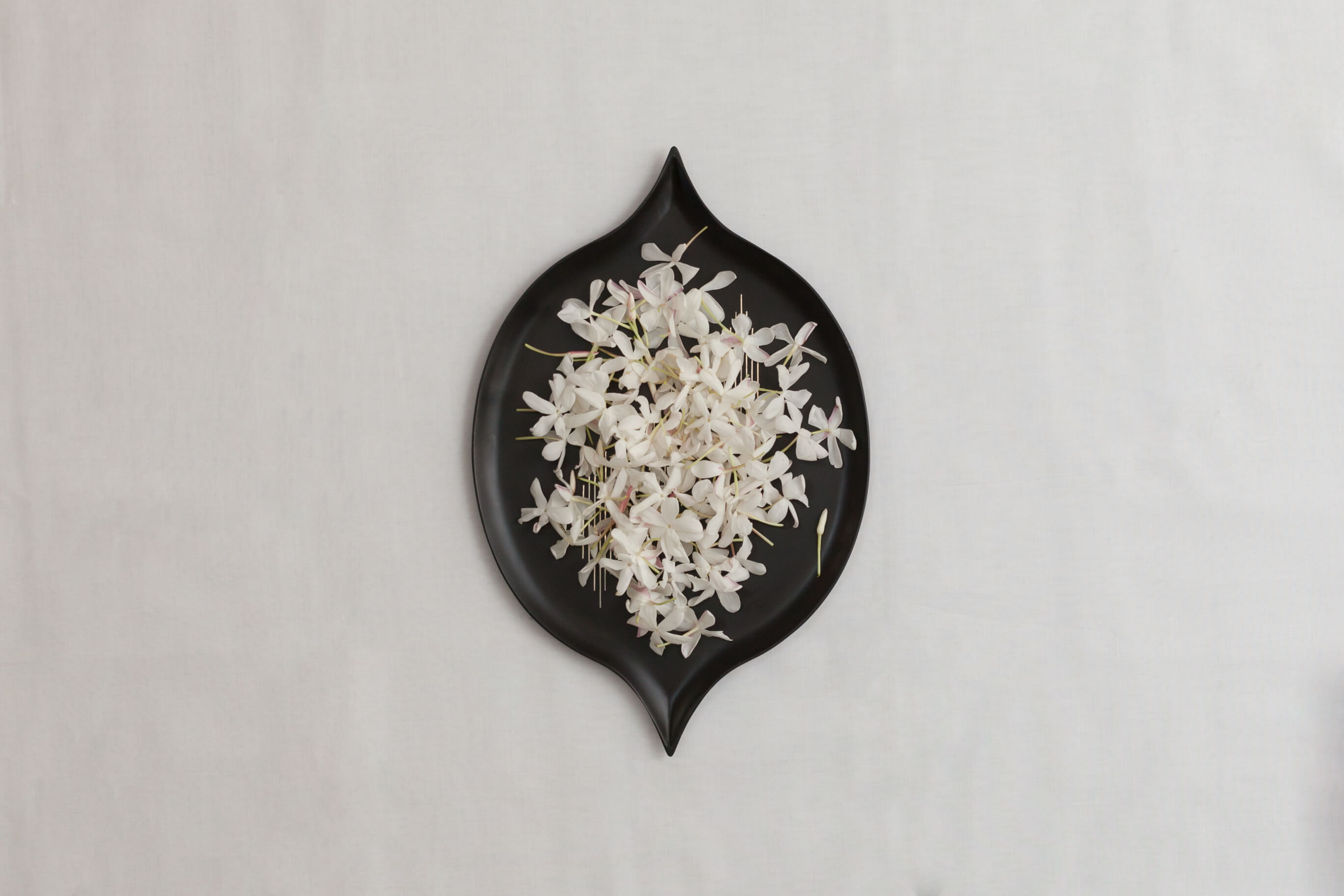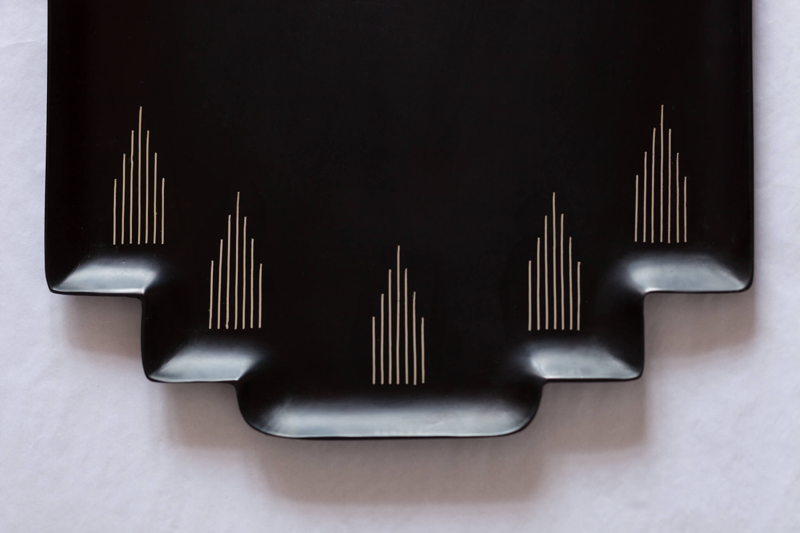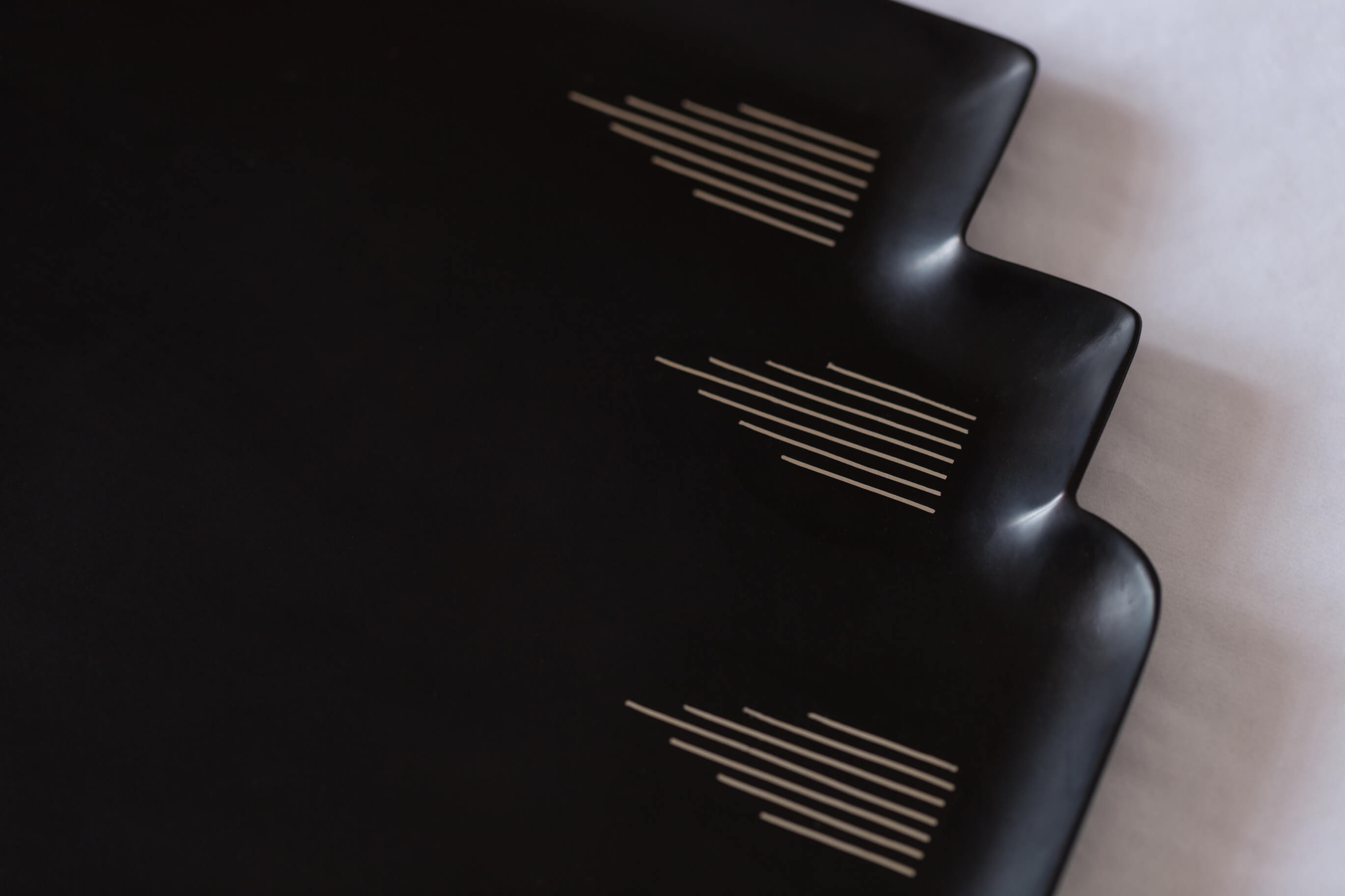 The trays are distinguished for their simple design, clean lines and a refined elegance. With its palette of black and silver, we have approached this extremely ornate and decorative craft with a pared down aesthetic and modern interpretations.